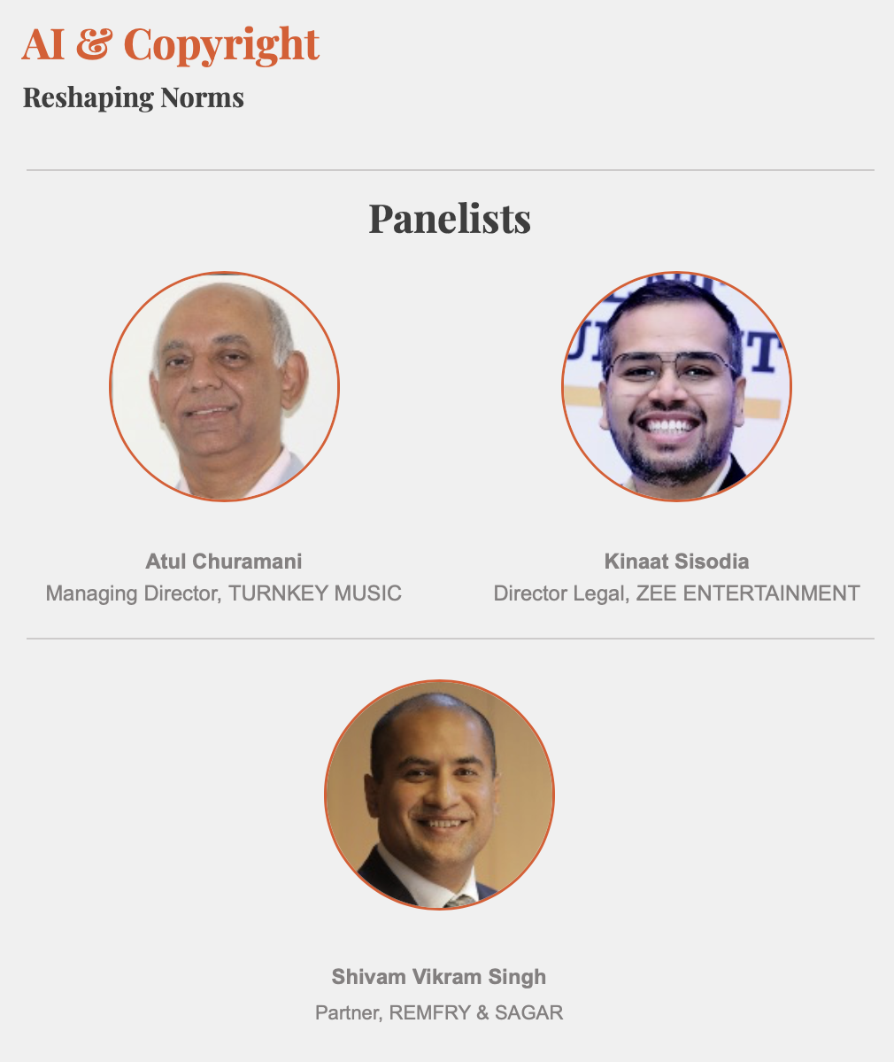 IPHour is Remfry & Sagar’s webinar series. The February 2026 edition titled “AI & Copyright: Reshaping Norms”, saw Atul Churamani (Managing Director, TURNKEY MUSIC) and Kinaat Sisodia (Director Legal, ZEE Entertainment) in conversation with Remfry & Sagar Partner Shivam Vikram Singh.