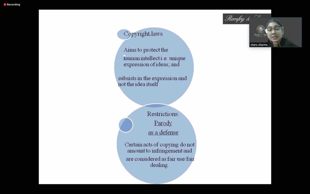 Earlier this month, an internal knowledge sharing session at the Firm involved a presentation on the ‘Defence Of Parody In Copyright Law’. Charu Sharma, Senior Associate at Remfry & Sagar, shared expert insights on recent Indian judgments in this domain and also drew comparisons with the treatment of ‘parody’ in foreign jurisdictions.